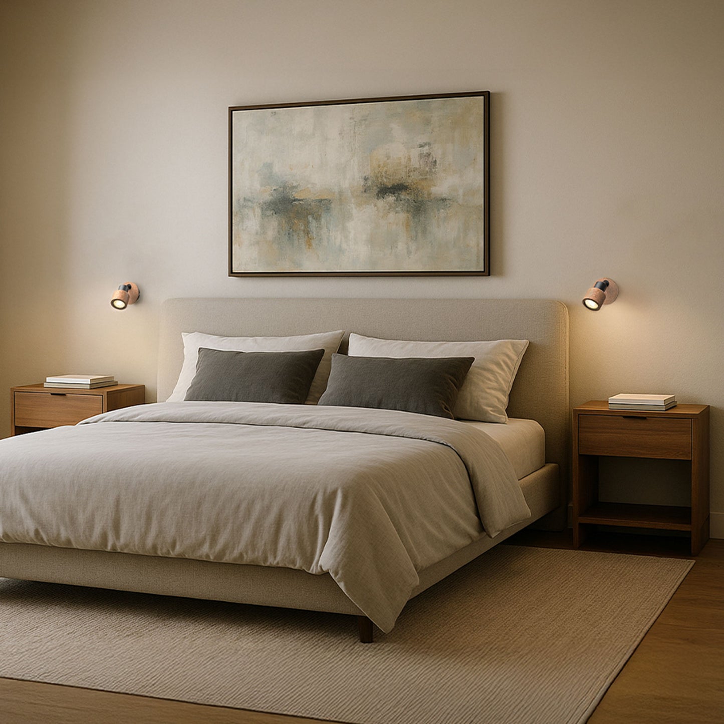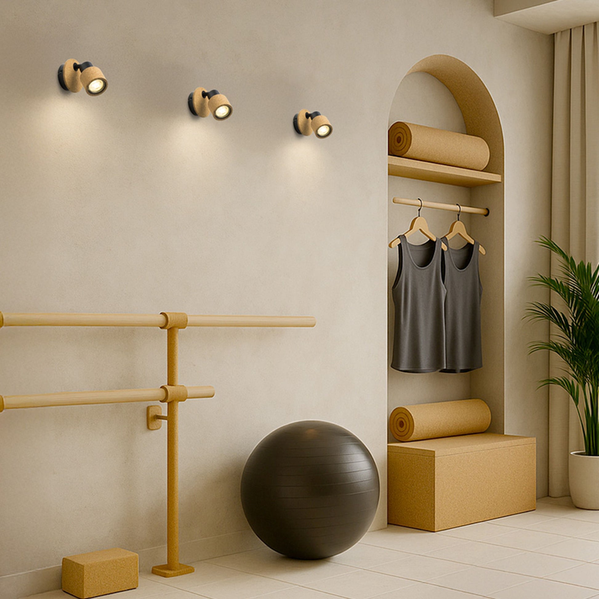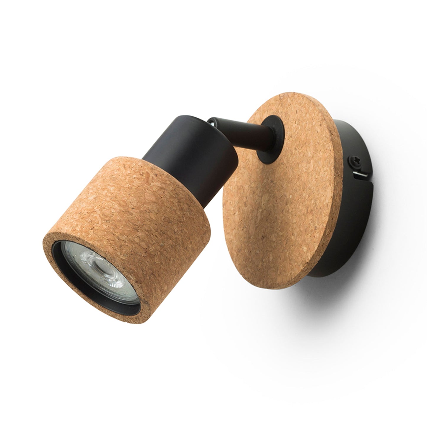 Luonnonkorkin ja maalatun metallin yhdistelmästä valmistettu seinävalaisin LED-valonlähteille, jossa on GU10-kannakke