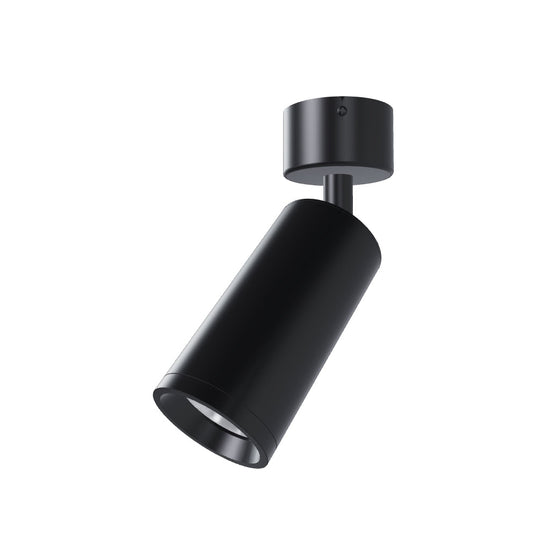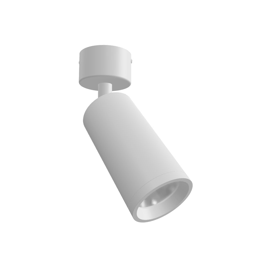 Minimalistinen lieriönmuotoinen kohdevalasin GU10-valonlähteille pyöreällä kannalla. Kannakkeen kiinnitetyt jouset mahdollistavat eripituisten valonlähteiden käytön.