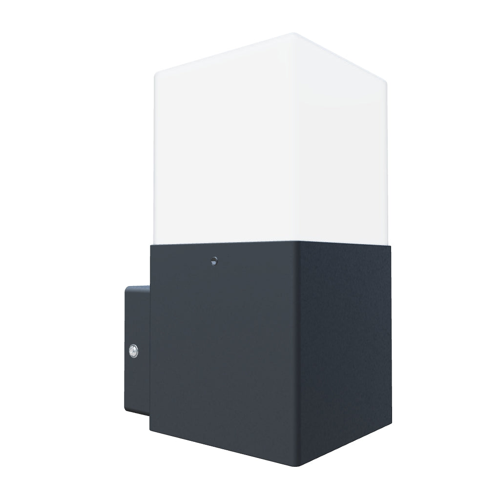 Ulkotilan seinävalaisin, jossa on opaalinvärinen kupu ja E27-pidin LED-valonlähteille.