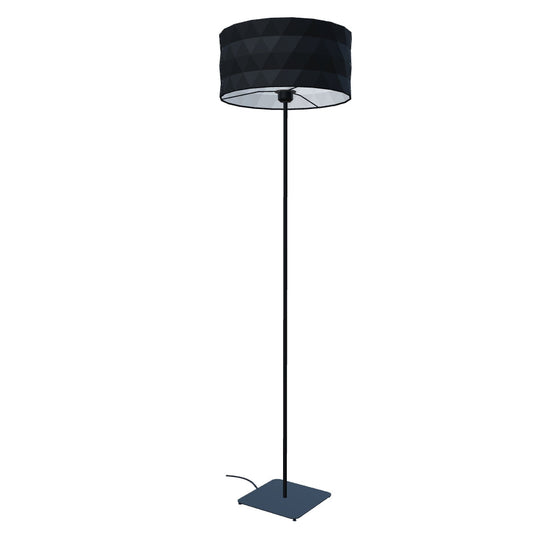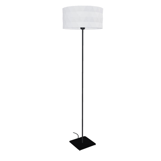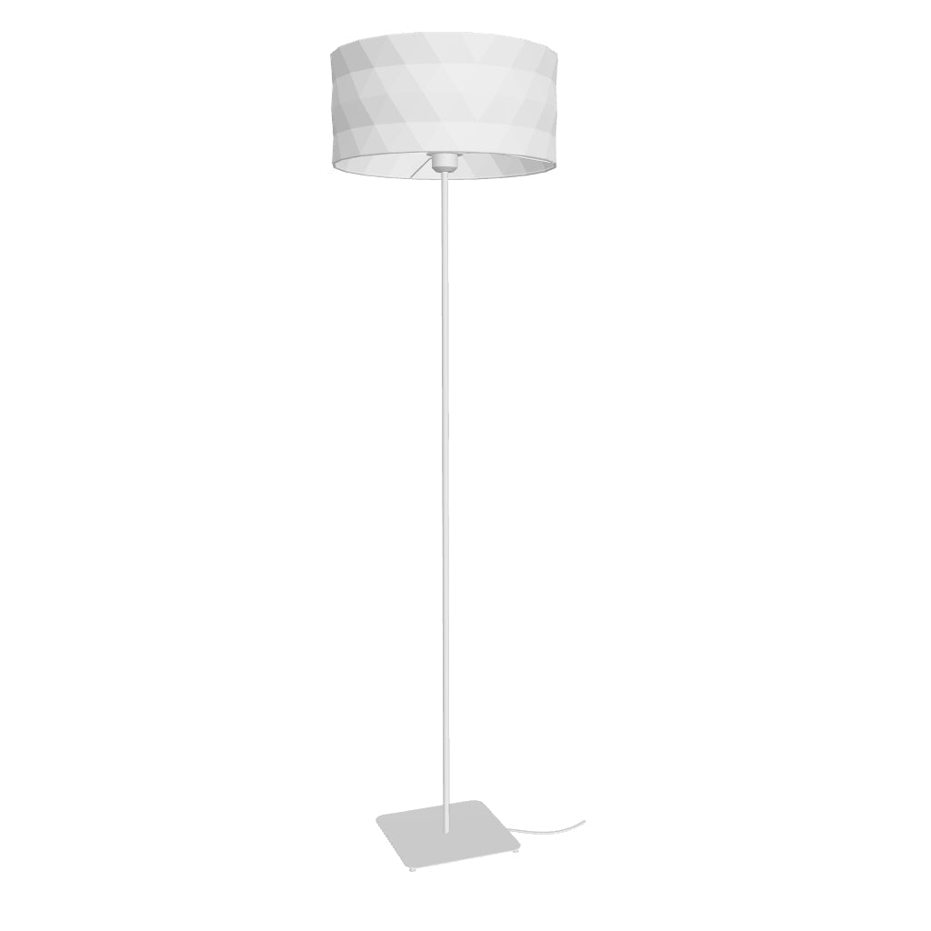 Lattiavalaisin, jossa on lakattu metallijalusta ja kankainen varjostin, jossa on geometrinen 3D-pinta. Sopii LED E27 -valonlähteille.
