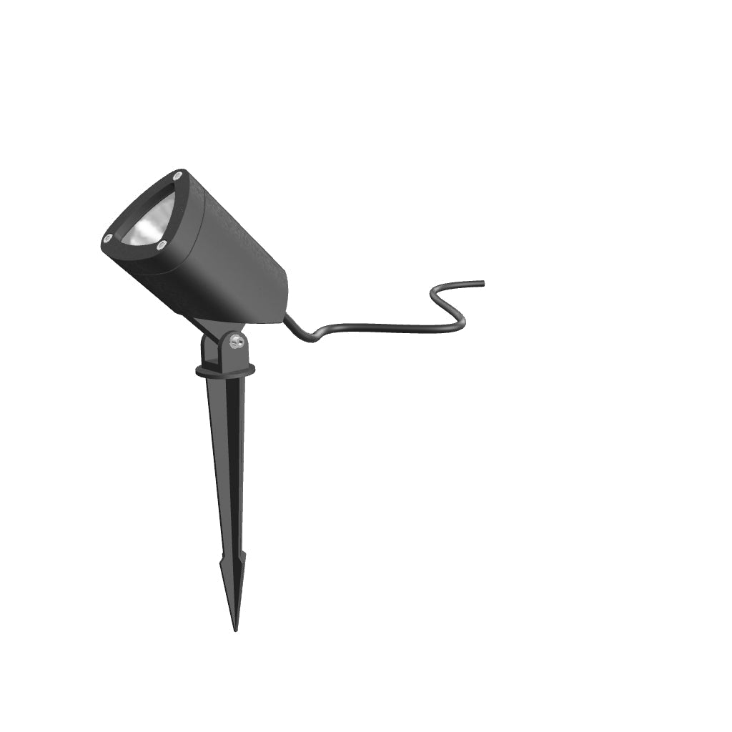 Kohdevalo piikillä, integroitu LED, ulkokäyttöön. Toimitetaan virtajohdolla jonka päässä ei ole pistoketta.