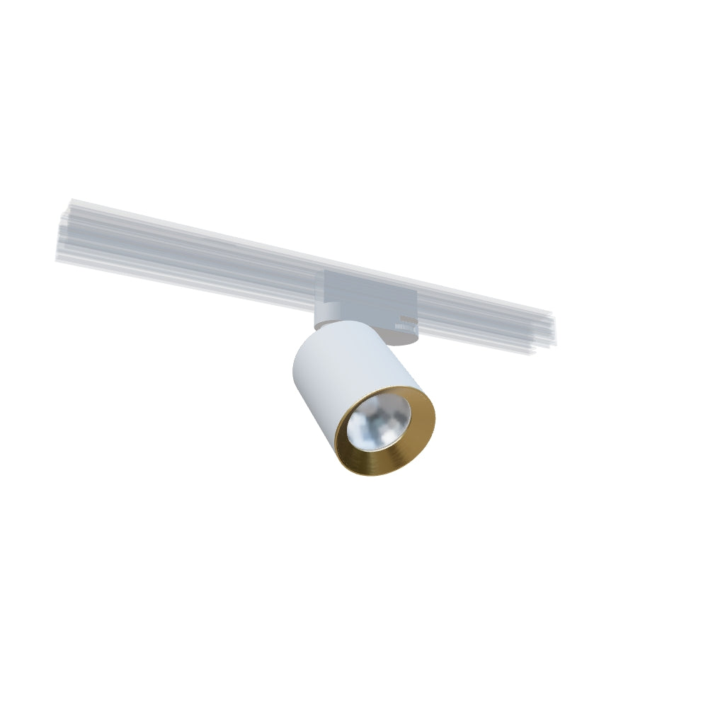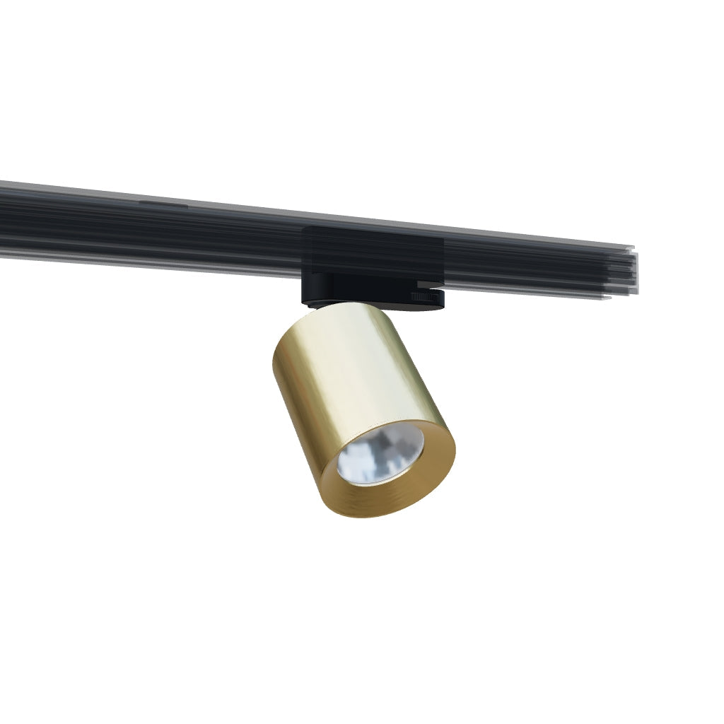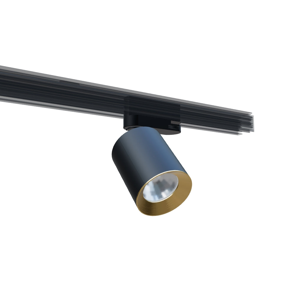 Sylinterimäinen valonheitin, jossa on GU10-liitäntä LED-valonlähteille, sekä koristeellinen varjostin harjattua mustaa messinkiä. Erilaisia väriyhdistelmiä on saatavana ostamalla lisävarjostimia muissa väreissä. Käytettäväksi 3-vaihekiskoille.