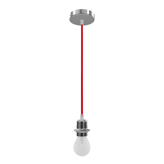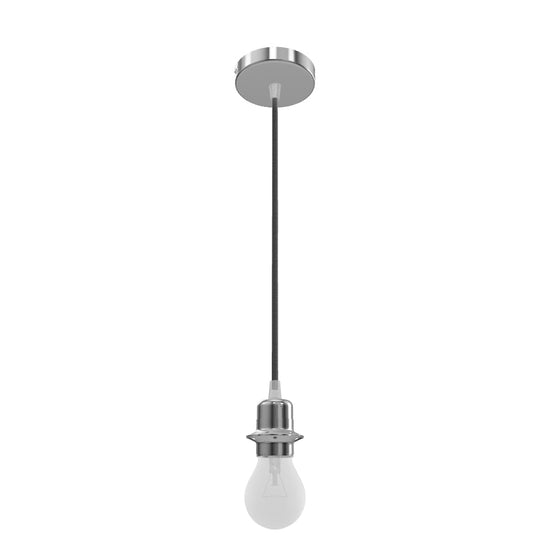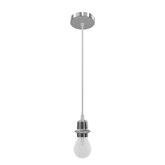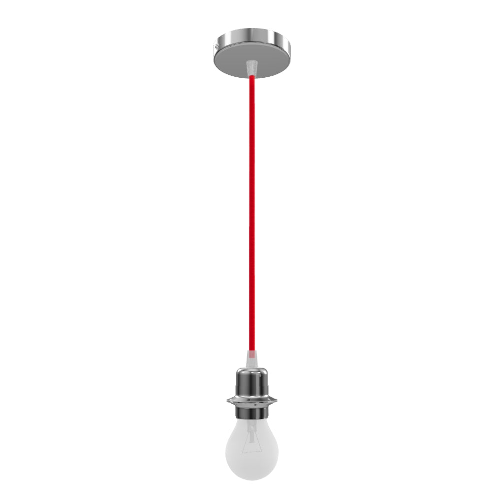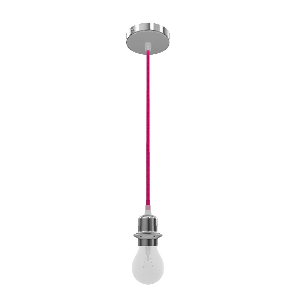 Riippuvalaisin-setti pyöreällä kromisella kattokannalla, tekstiilikaapelilla ja metallisella E27-pistokkeella. Soveltuu käyttöön sekä kevyemmän tekstiilivarjostimen kanssa että ilman. Sopivat varjostimet: DOUBLE 40/30, DOUBLE 55/30, ASPRO 40/30, ASPRO 55/30, RON 40/25, RON 55/30, RON 60/19, TEMPO 30/19, TEMPO 50/19.
