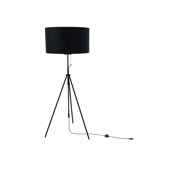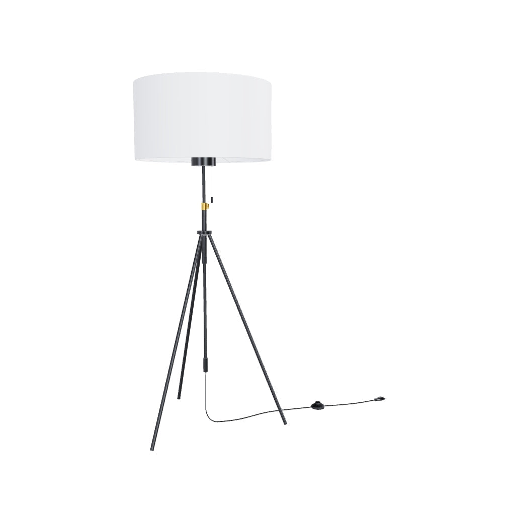 Tyylikäs lattiavalaisin, jossa on kankainen varjostin. Siinä on korkeussäädettävä lakattu metallijalusta, jossa on messinkisiä lisävarusteita. Sopii LED E27 -valonlähteille.