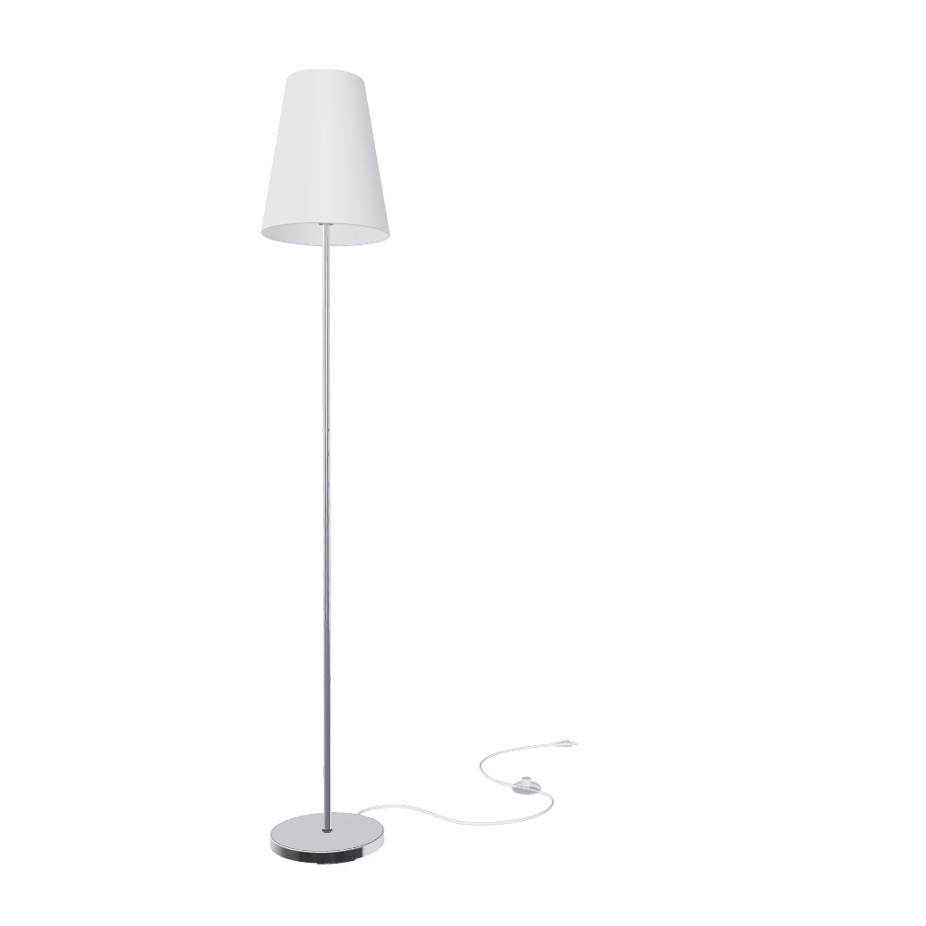 Lattiavalaisin, jossa on kromattu jalusta ja kangasvarjo. Sopii LED E27 -valonlähteille.