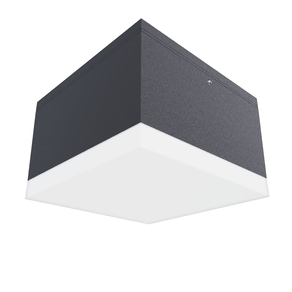 Kulmikas LED-ulkovalaisin, jossa satiinilasinen kupu.