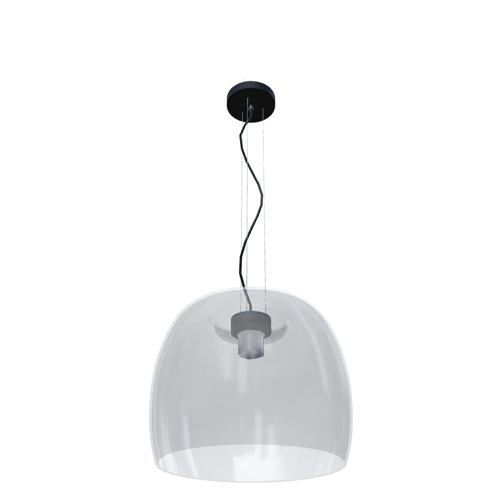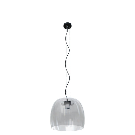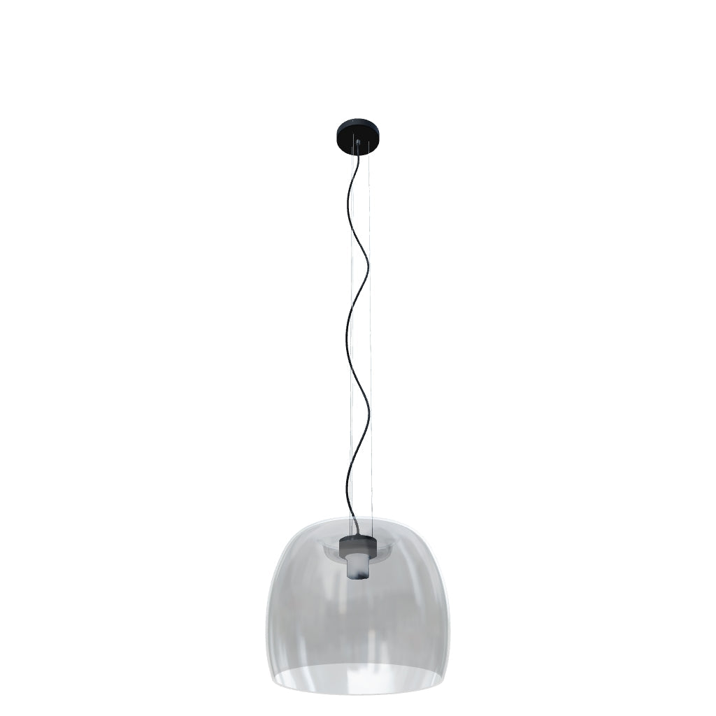 Design lasinen riipus E27-kannan LED-valonlähteelle. Lasissa esiintyvät pienet kuplat ovat valmistusprosessin tulosta eivätkä viittaa varjostimen virheeseen.