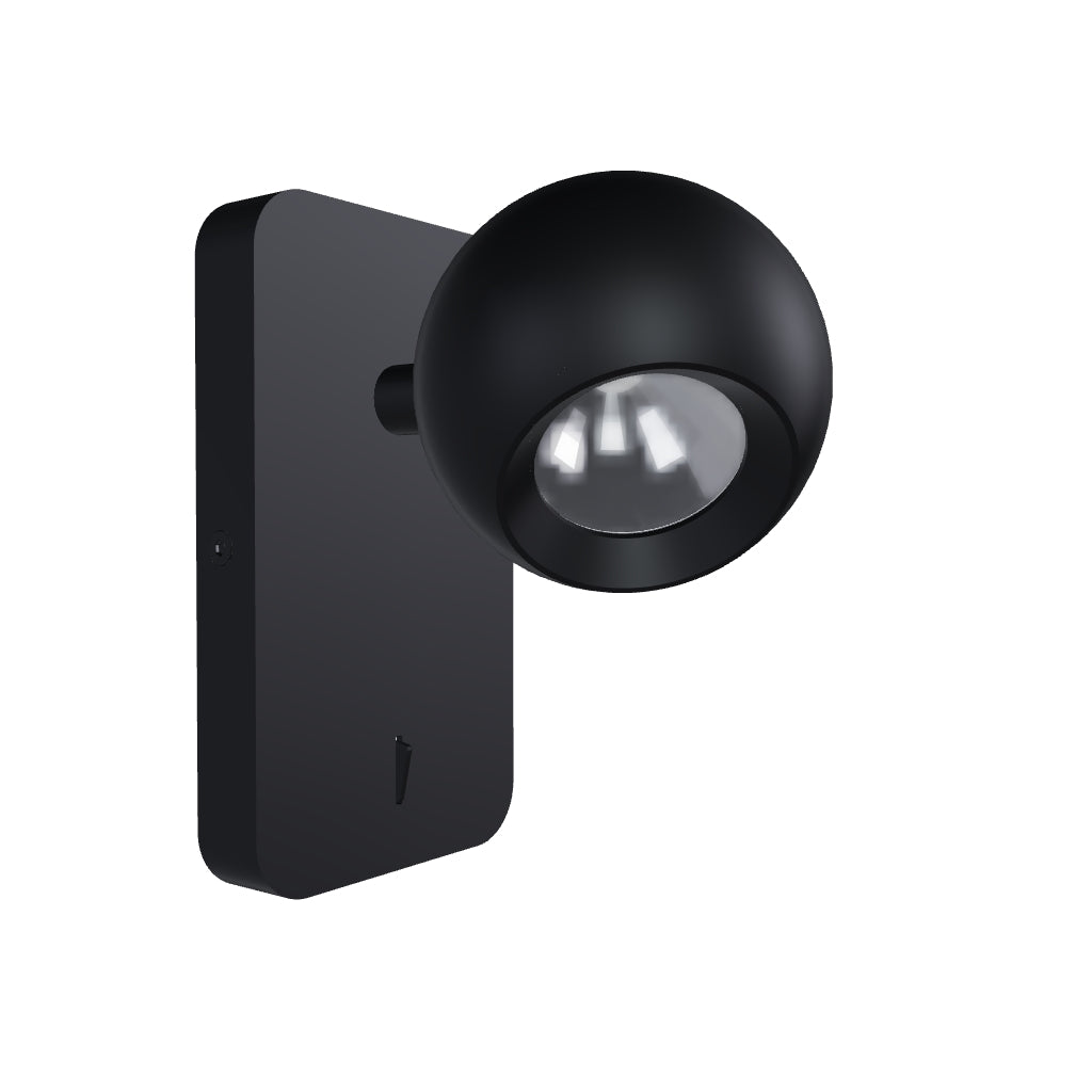 Lakattu seinävalaisin, jossa säädettävä GU10 -valonlähde ja jalustassa oleva kytkin.