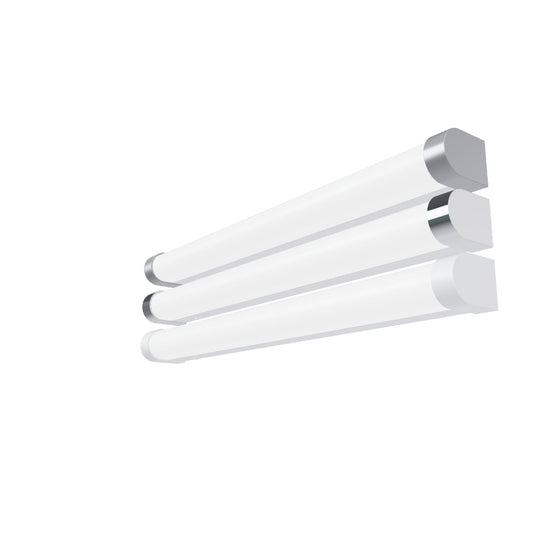 Kostean tilan suoraviivainen valaisin, sisääsrakennettu LED. Sopii peilin yläpuolelle, mahdollista ostaa päätykappaleet eri väreissä (R12906, R12907, R12908).