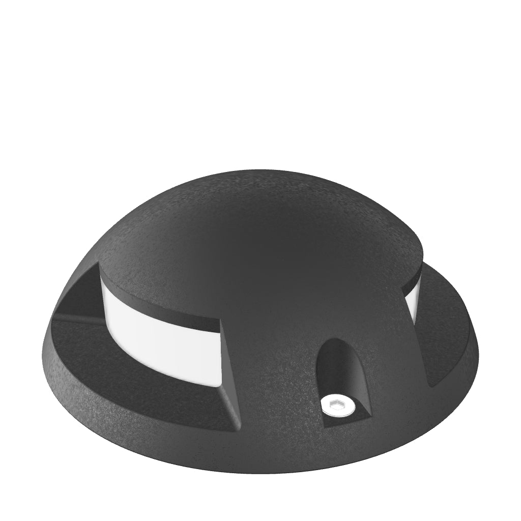 LED-maavalaisin kolmella valorakoilla, voidaan asentaa suoraan laatoille ilman upotusta.
