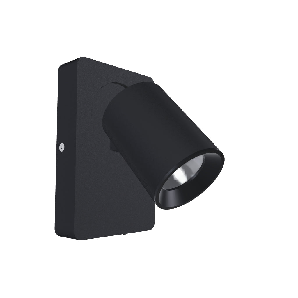 Lakattu seinävalaisin, jossa on säädettävä GU10-valonlähde ja sisäänrakennettu USB-portti matkapuhelimien tai vastaavien lataamiseen.