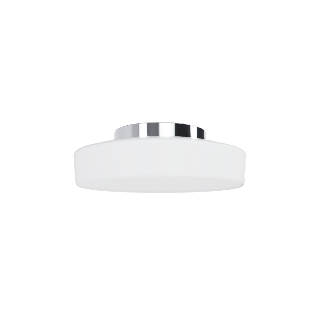 LED-kattovalaisin opaalilasista kromikannalla. Sopeutuu kosteisiin tiloihin.